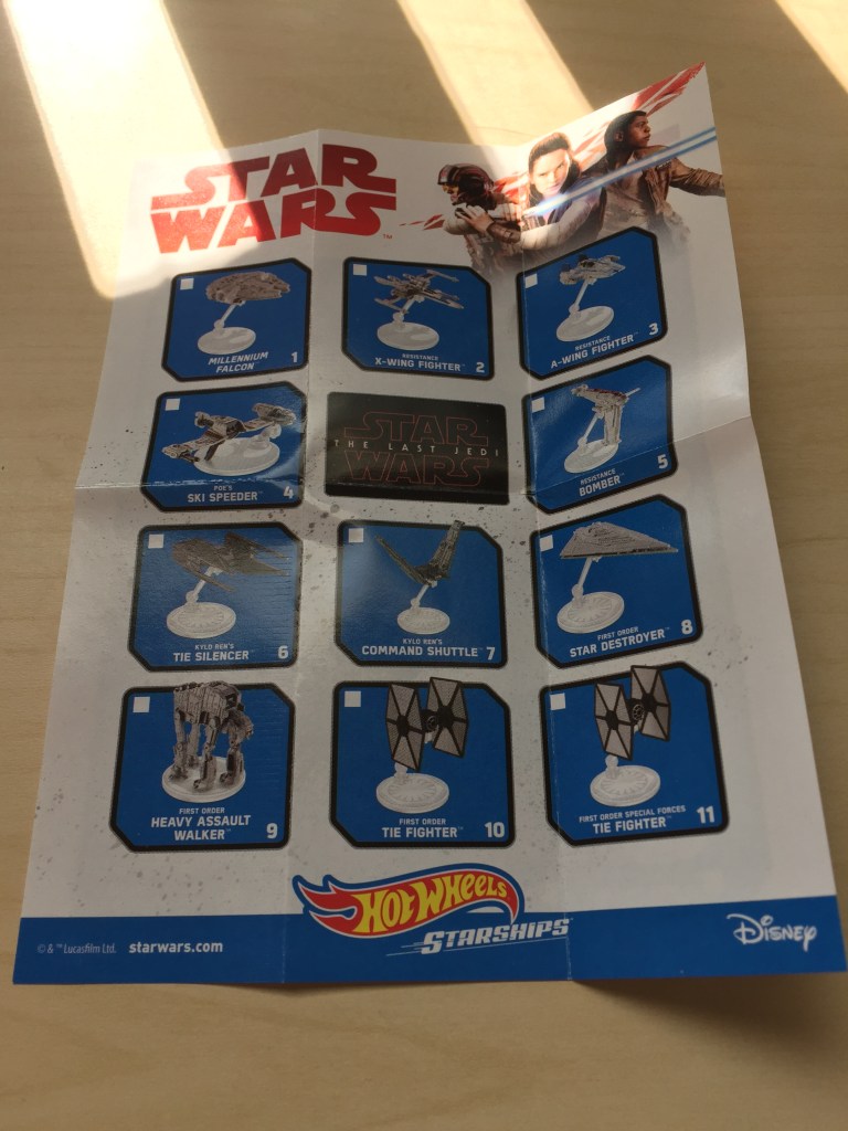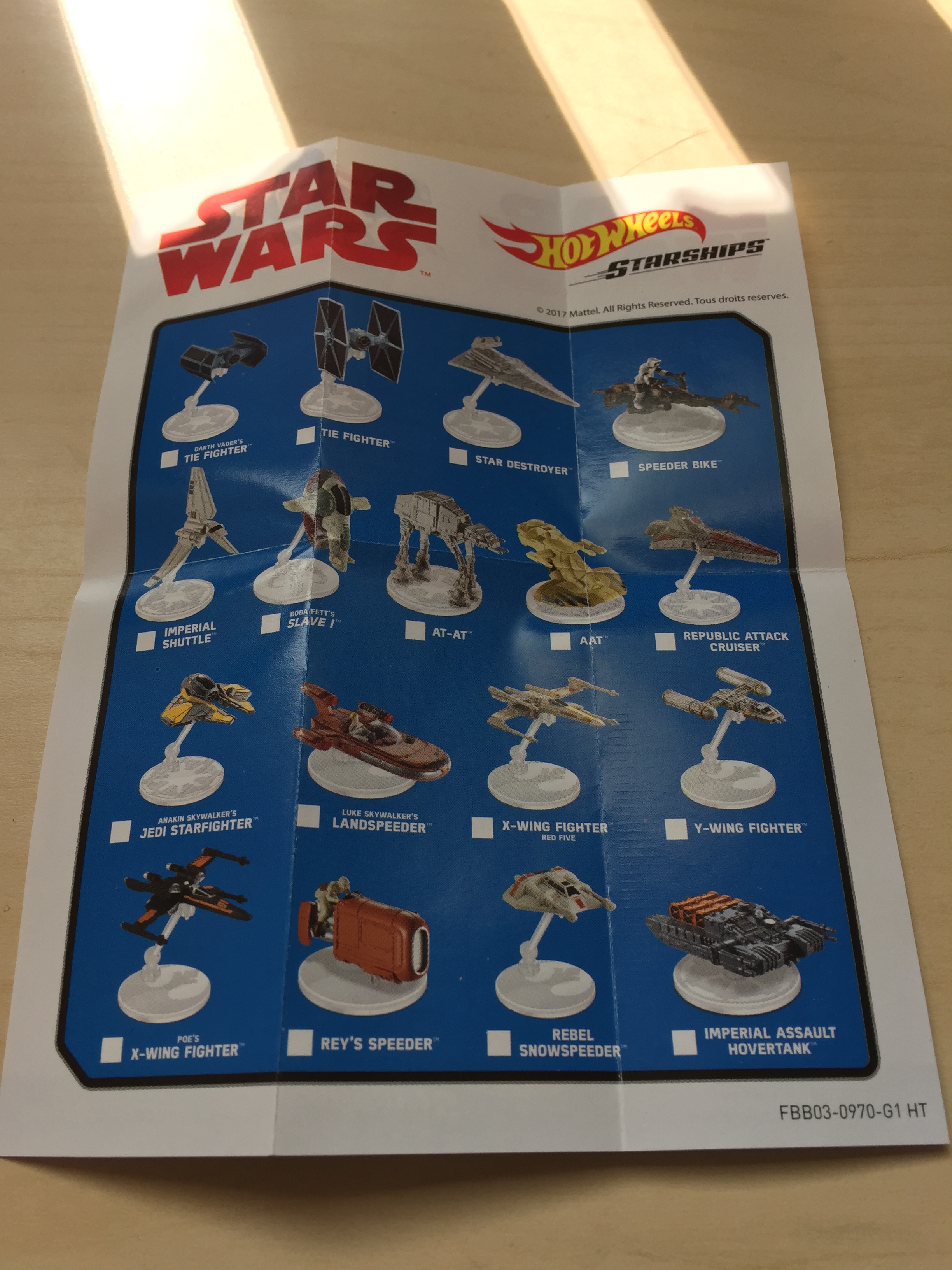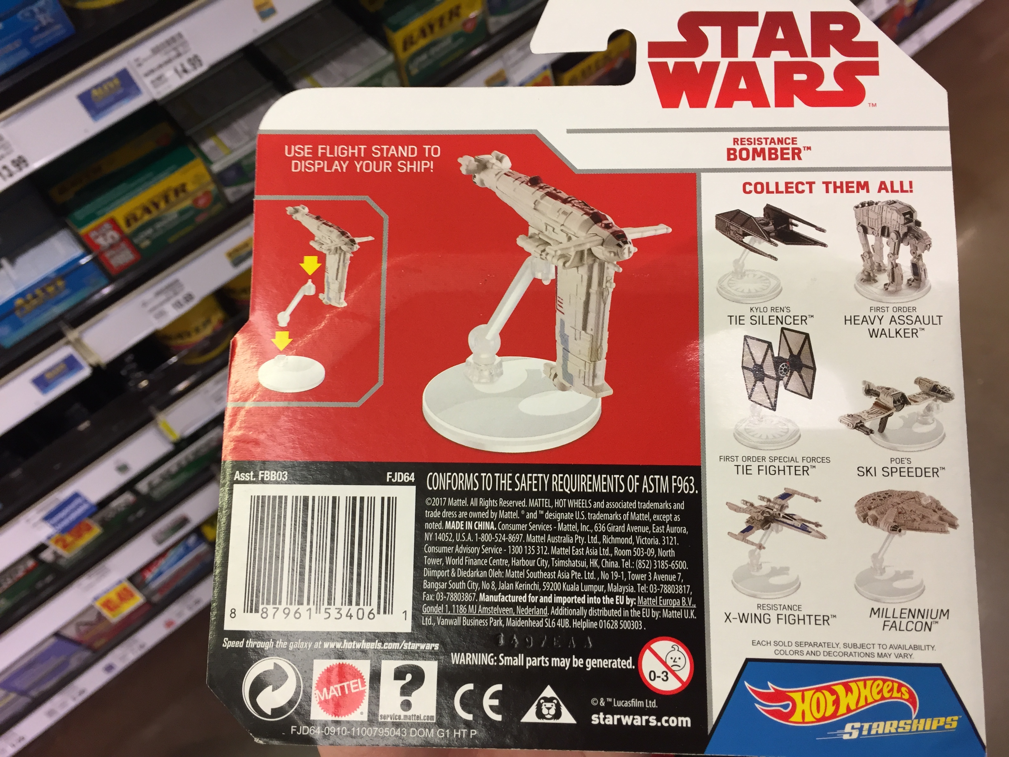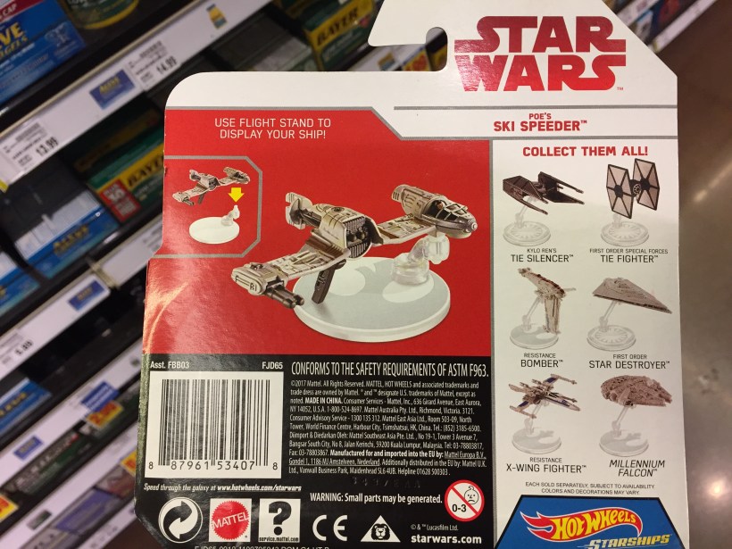 I took the Resistance Bomber and Poe’s Ski Speeder to self-checkout, expecting to be denied, but nope! $5.99 each, so I bagged them up with my frozen waffles and veggie corn dogs. I just bought my first TLJ merch! Here they are, unboxed: