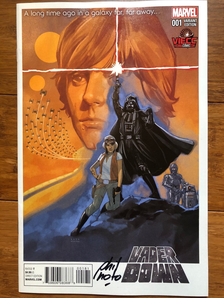 Phil Noto is my favorite Star Wars artist, bar none. From his covers to his sketches to his interior pages on titles like Poe Dameron and Chewbacca, his books just have a perfect combination of style and realism. The book I had him sign was a convention exclusive cover for the first issue of the “Vader Down” event.