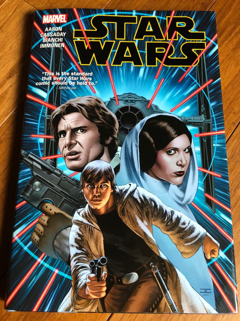 I was a fan of Jason Aaron’s following his run on Wolverine and The X-Men, but was oddly apprehensive about him taking the reigns of the “main” Star Wars book. I don’t know why. It took a few issues, but I eventually ended up loving his run on the book and everything he brought to the lore. For Christmas last year, Lindsey got me pretty much the best gift ever, a volume 1 hardcover signed and personalized by Aaron, courtesy of the Comic Book Legal Defense Fund.